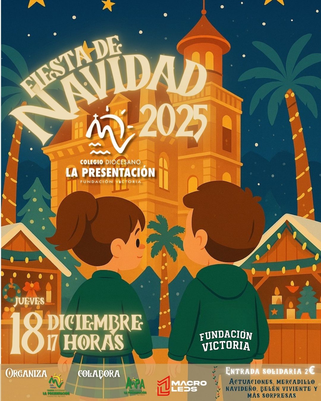 La entrada permitirá acceder a todas las actividades previstas durante la tarde, entre ellas actuaciones del alumnado, mercadillo navideño, belén viviente y otras iniciativas preparadas con la colaboración del AMPA. Esta celebración constituye uno de los momentos más especiales del trimestre, en el que toda la comunidad educativa comparte el espíritu navideño y los valores de convivencia propios de Fundación Victoria.